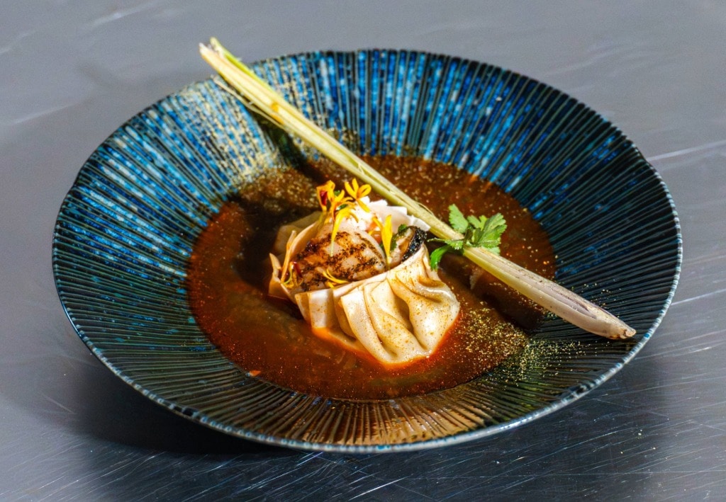 Skaldjursbisque med asiatisk twist och dumplings